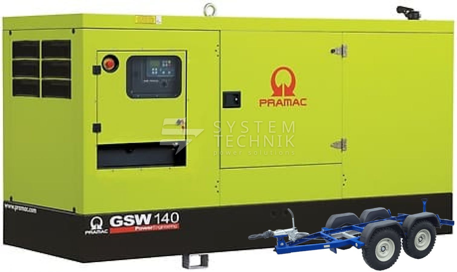 - Дизельный генератор Pramac GSW 140 I В кожухе на прицепе