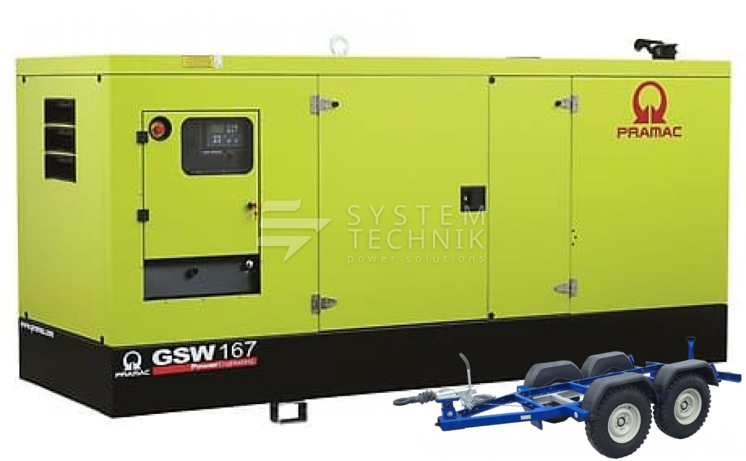 - Дизельный генератор Pramac GSW 167 P 230V 3Ф В кожухе на прицепе
