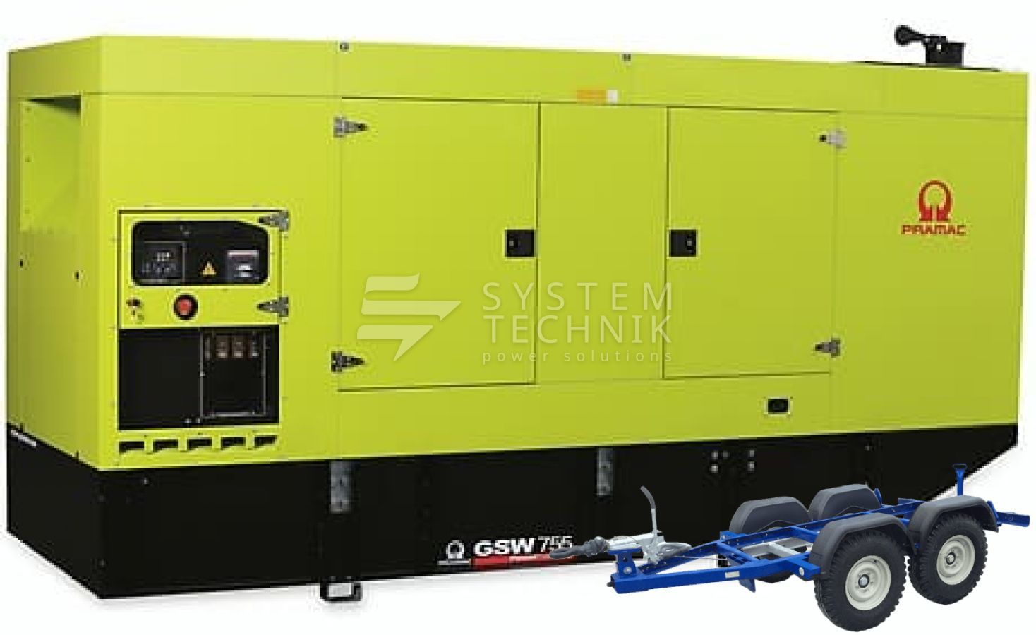 - Дизельный генератор Pramac GSW 755 DO 400V В кожухе на прицепе