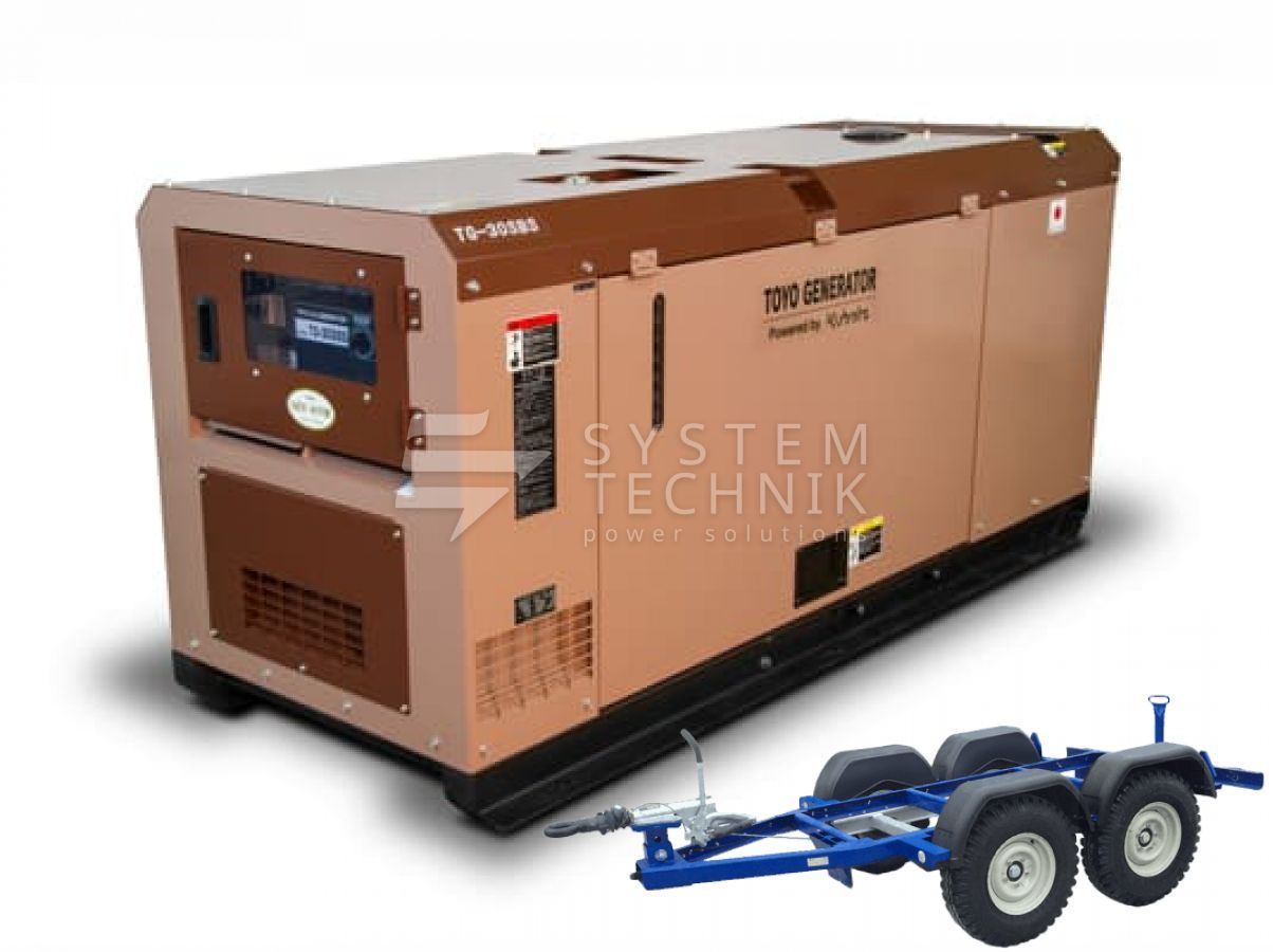 - Дизельный генератор Toyo TG-30SBS В кожухе на прицепе